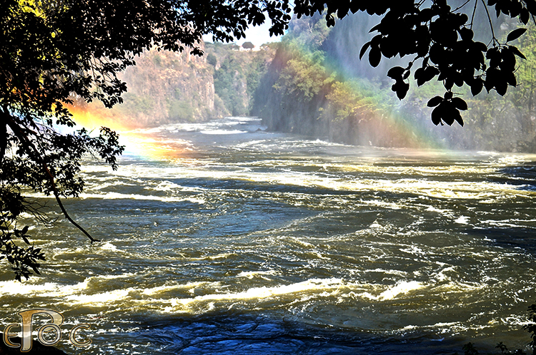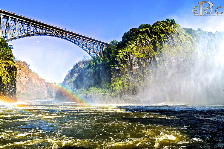 Eternal rainbows shining at the Victoria Falls, in an eternal union between water, Sun and air; creating a breathtaking and peaceful landscape, in a place overwhelmed by the water’s ubiquitous movement.