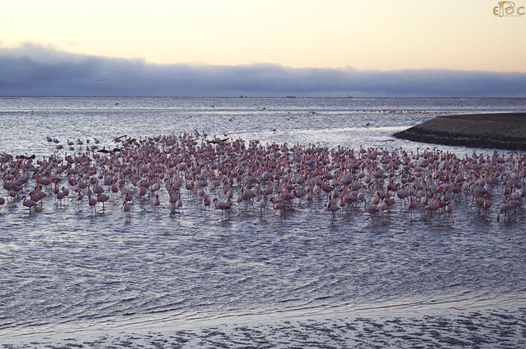 We have been spending the first evening’s sunset with pink flemish just outside the town.