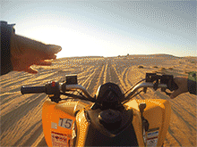 I have no driving license, being able to drive on a quad bike was really exciting! I enjoyed every second of it. Also the view around you at Dune 7 is breath taking, especially at sundown. You are driving your bike and you have such wonderful colors, the sun and the desert. You feel really alive!