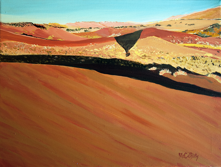 I asked to my friend and artist Brian McCafferty to create this painting based on a photograph I’ve taken earlier this year back in Namibia, whilst we were making an air ballooning tour in the Sossusvlei region. It was a difficult moment for me and I needed to have another perspective. Thank you to Brian for this magnificent work.