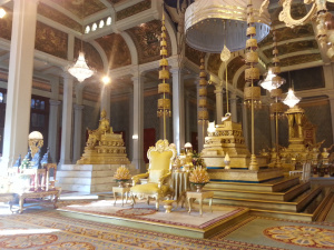 En ce mardi 28 octobre 2014, le soleil dardait ses rayons d’or à travers la Porte de la Victoire et illuminait de sa lumière éclatante la Salle du Trône ou Preah Tineang Tevea Vinicchay. Je hâtais le pas en gravissant les marches de l’escalier du côté Sud pour aller retrouver ma tante, Son Altesse Royale la Princesse Samdech Sisowath Pongneary Monipong (que dans la famille nous appelons affectueusement Tante Lolotte, héritage de son passage chez les sœurs de la Providence quand elle étudiait dans cette prestigieuse institution religieuse de Phnom Penh) qui m’attendait un grand sourire aux lèvres. Elle me conduisit à ma place, tout près du fauteuil doré où prendrait place dans quelques instants Sa Majesté la Reine-Mère.